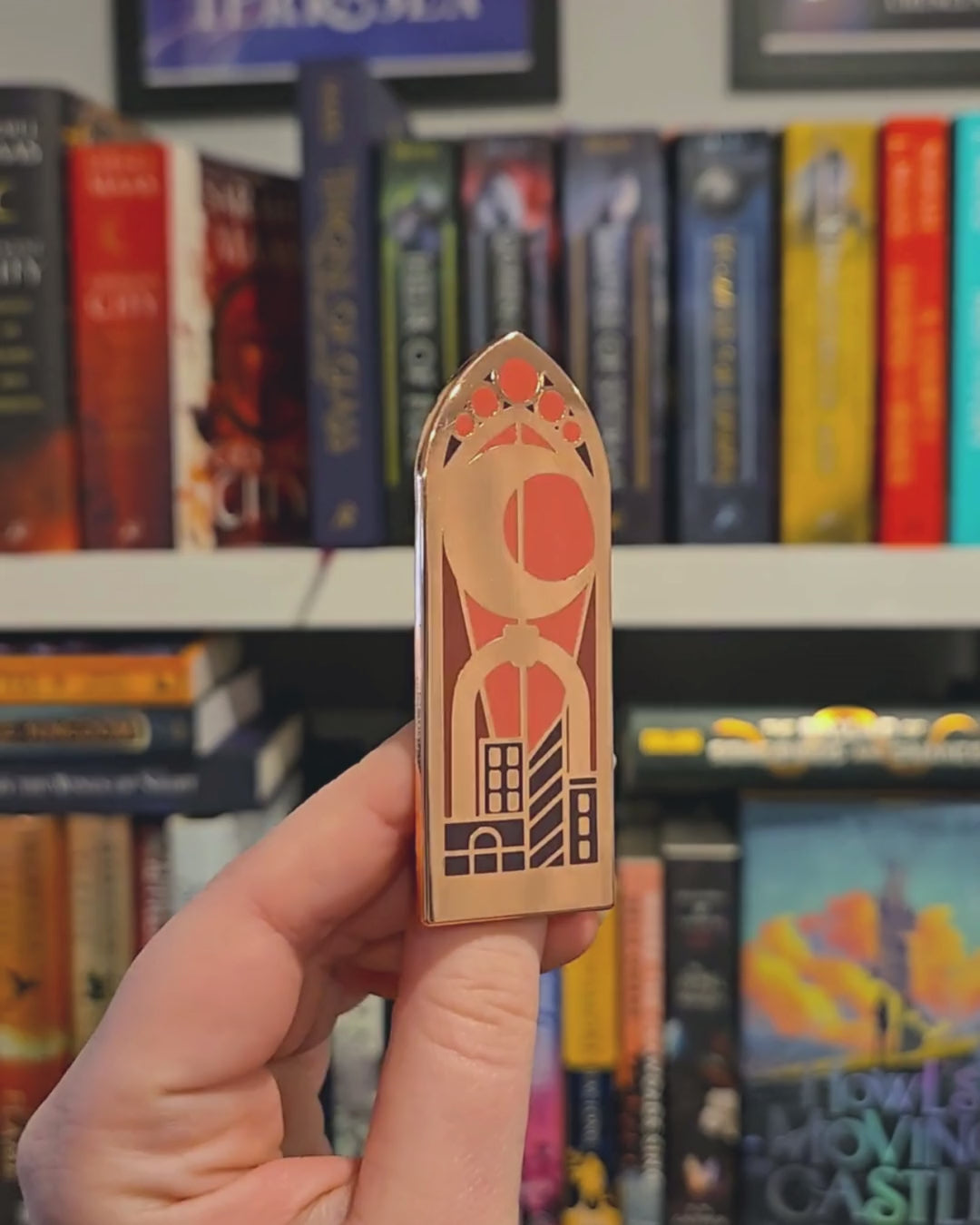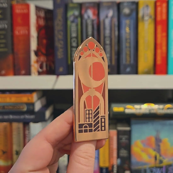 Crafted with meticulous attention to detail, this stained glass window pin evokes the beauty and drama of Crescent City, making it a must-have for fans of Maas' spellbinding series. The rich colors and rose gold accents reflect the enchanting and otherworldly nature of the books, making this pin a beautiful reminder of Bryce Quinlan’s world.