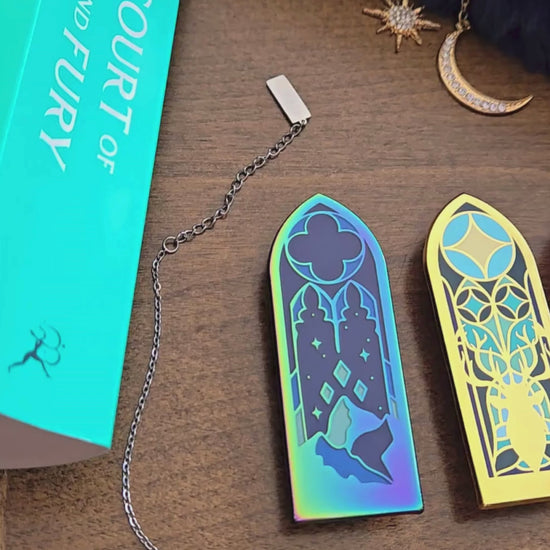 Step into the magical worlds of Sarah J. Maas with this stunning stained glass window enamel pin set, inspired by her bestselling book series: Throne of Glass, A Court of Thorns and Roses (ACOTAR), and Crescent City. Each pin captures the essence of these enchanting fantasy universes, offering fans a unique and beautifully crafted way to showcase their love for Maas' iconic stories.